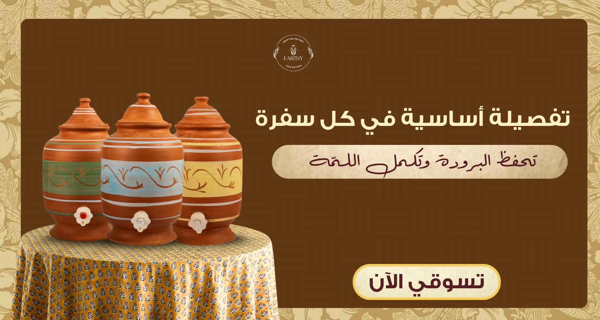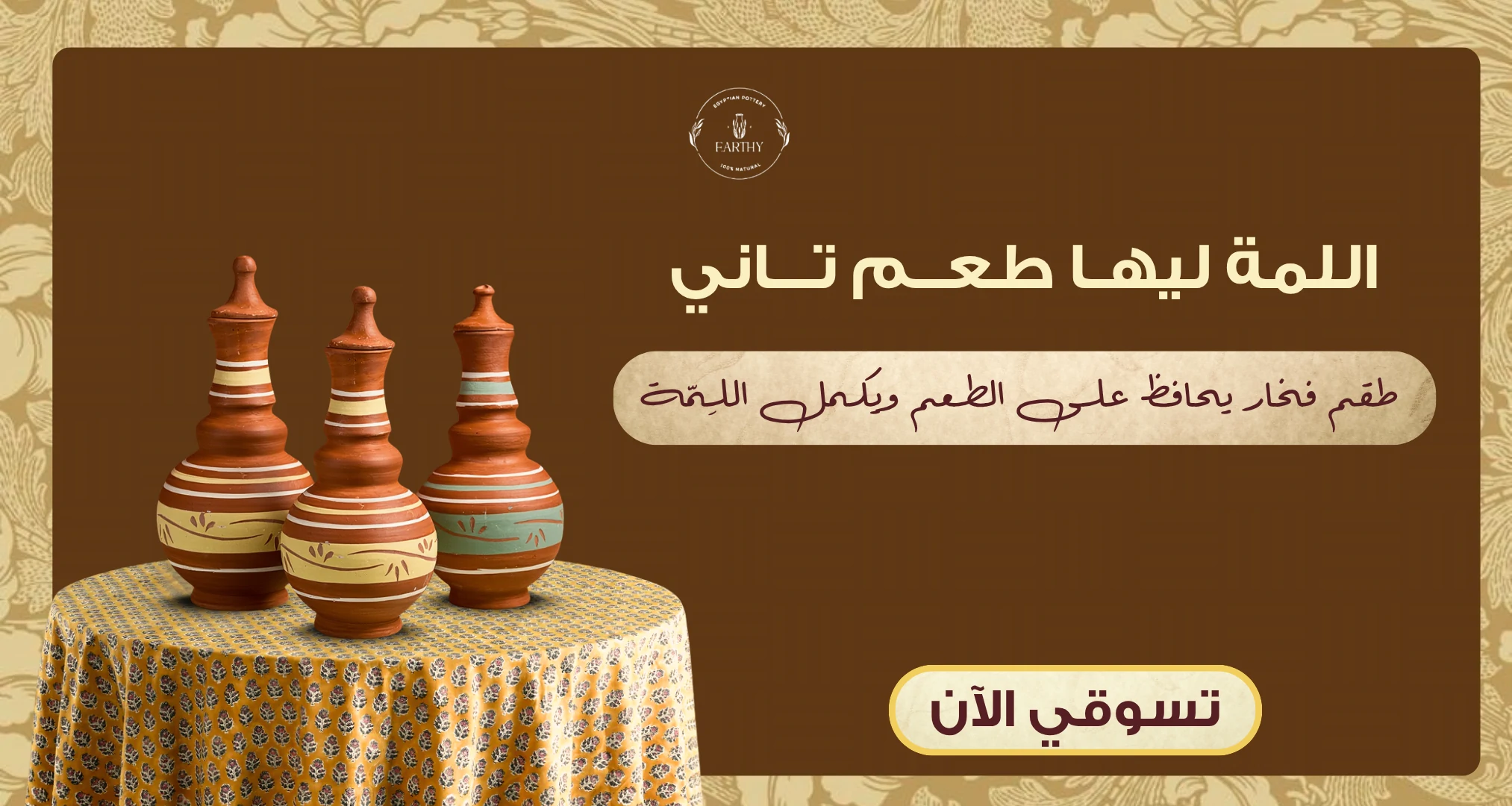 استمتعي بتجربة طبخ وتخزين مياه صحية، تجمع بين أصالة التراث وجودة الطمي الأسواني الخالص، من غير أي إضافات صناعية أو طلاء – فقط الطبيعة في أنقى صورها.